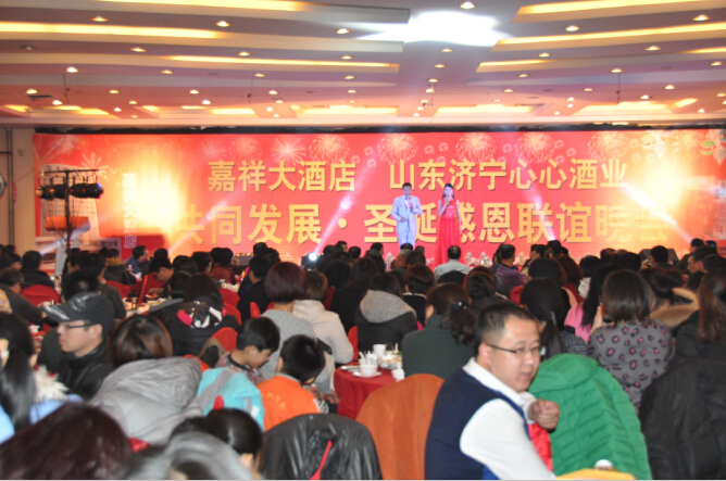 12月24日,平安夜,心心酒業(yè)與嘉祥大酒店聯(lián)合舉辦的“共同發(fā)展圣誕感恩聯(lián)誼會(huì)”在嘉祥大酒店隆重舉行。大酒店內(nèi)張燈結(jié)彩,火樹銀花,高朋滿座,喜氣洋洋,一派節(jié)日的氣氛。公司董事長(zhǎng)韓宇、嘉祥大酒店總經(jīng)理?xiàng)羁?、嘉祥縣企事業(yè)單位、心酒經(jīng)銷商等近400余位嘉賓參加了聯(lián)誼會(huì)。