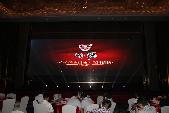 (圖為活動現(xiàn)場播放心心酒業(yè)的宣傳片)
